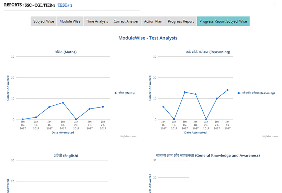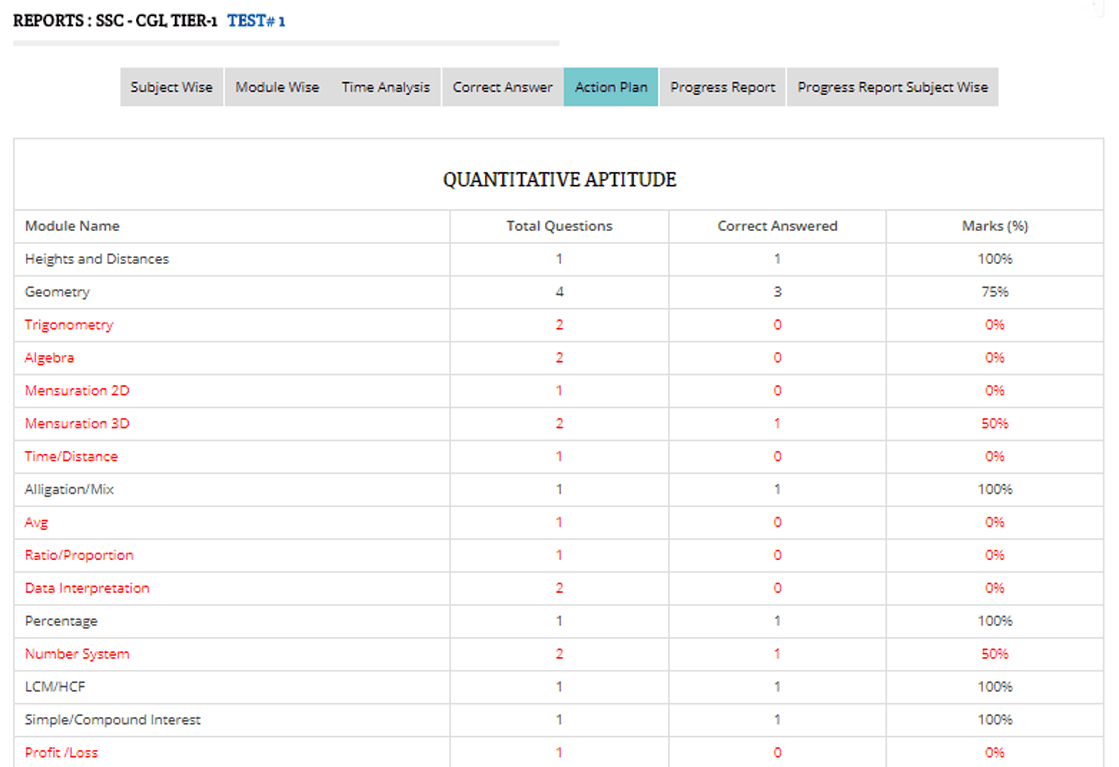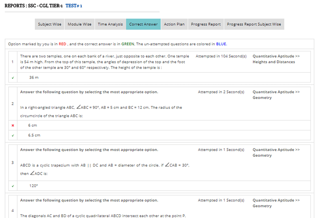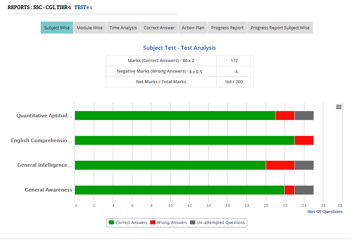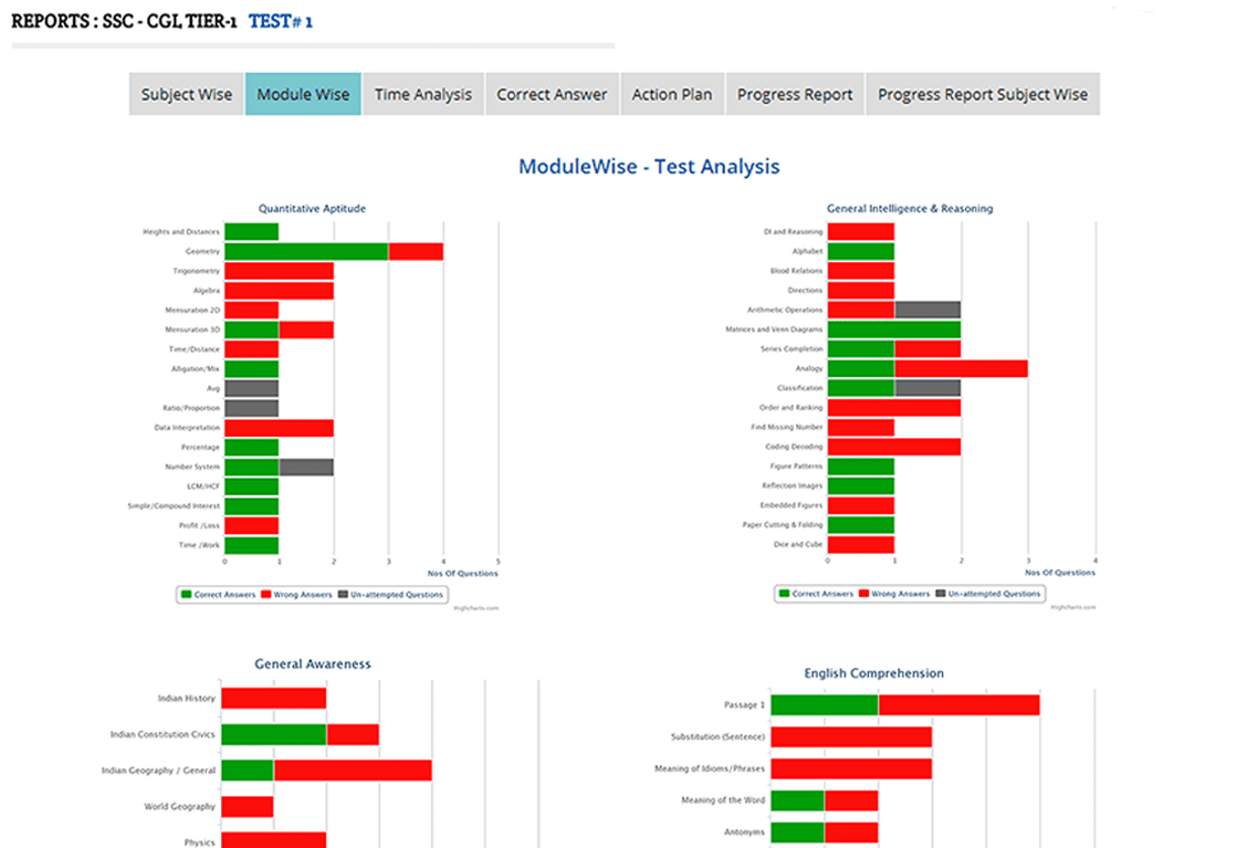 You can check your knowledge of subjects, sub-topics and speed for taking exams. We provide detailed reports that will tell you analysis of your performance and progress.